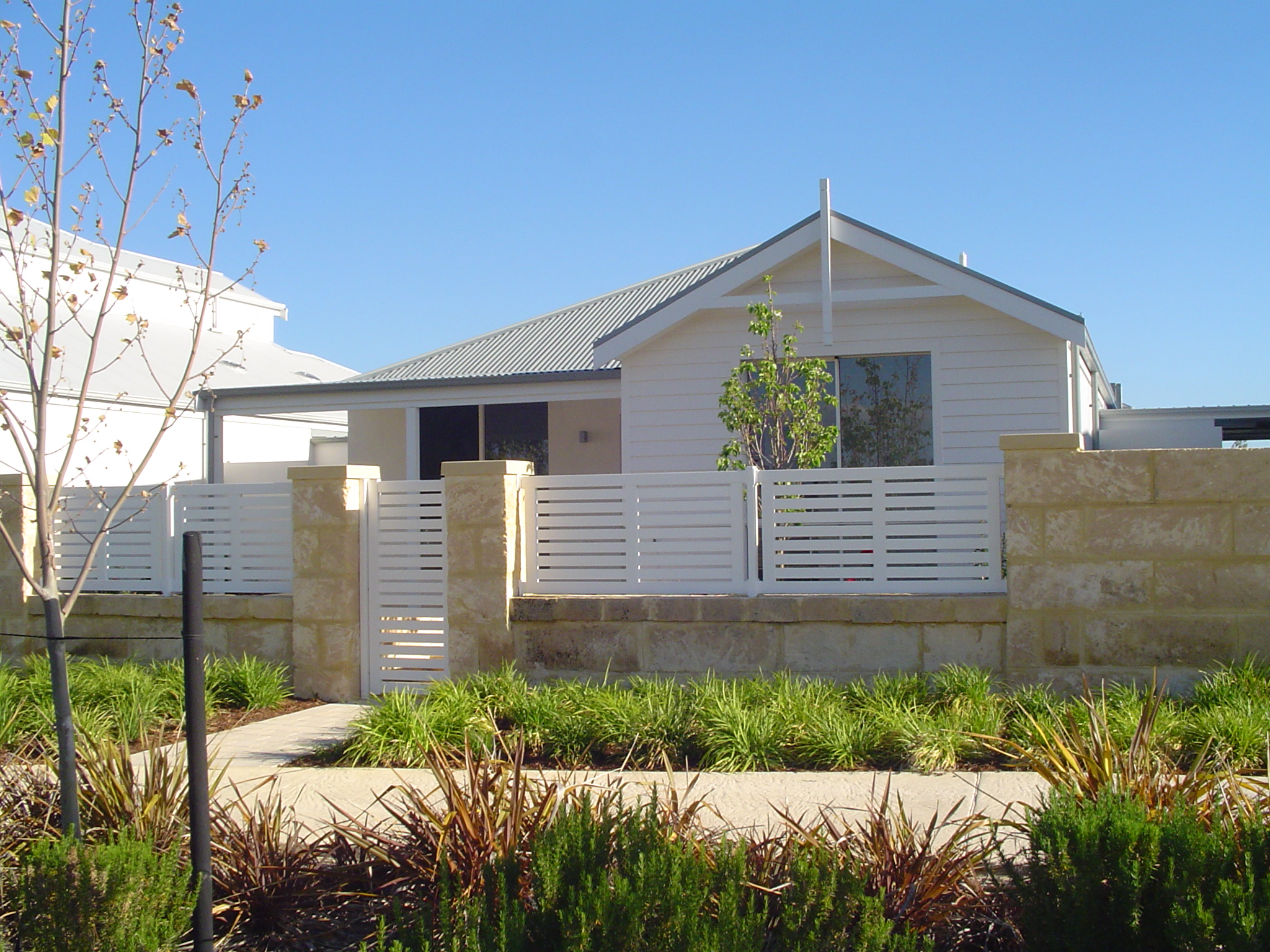 Brick Infill Traditional — classic pointed pickets. Suits heritage homes and traditional streetscapes.